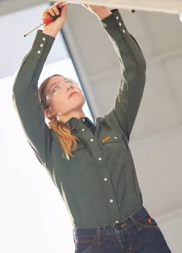 Wrangler Shirts: Women's OD Green 112350738 Flame Resistant Western Shirt